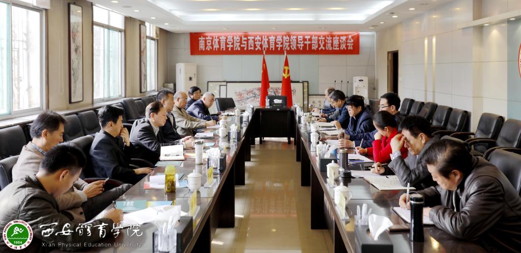 本网讯 3月21日,南京体育学院党委书记朱传耿一行与我院部分党政领导在行政楼二楼大会议室举行交流座谈会。党委书记黄道峻、院长朱元利、副院长文立新、副院长谢英出席。