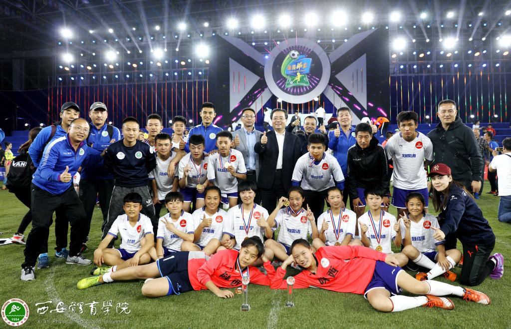 本次赛事活动共有陕西、甘肃、青海、宁夏、新疆的12支海选冠军队,分别参加小学组、初中女子组、初中男子组晋级全国总决赛的名额争夺。我院足球教练组负责选拔组建和集训参赛的陕西三支队伍中,初中女子组和初中男子组在预赛阶段表现出色,三战三胜,昂首闯入22日晚的决赛。