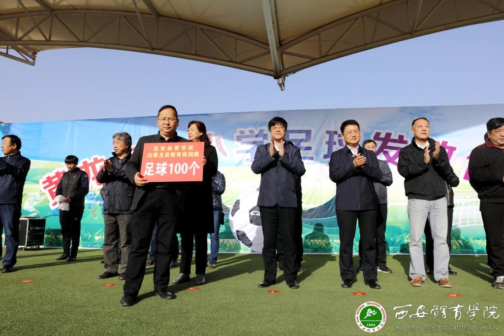 黄道峻一行还出席了黄龙县中小学校足球发放仪式,向当地中小学捐赠了100个足球。黄道峻、李富荣为足球联谊赛开球,并现场观摩了比赛。