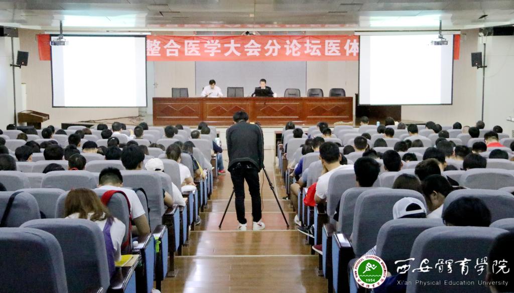 本网讯 4月29号下午,由中国医体整合联盟主办,我院承办的2018中国整合医学大会医体整合论坛在教学楼一楼报告厅举行。国家体育总局体育科学研究所研医体融合促进与创新研究中心主任郭建军、我院副院长刘新民、西安交通大学全球健康研究院体医融合实验室主任孙晓敏、我院健康科学系教授苟波出席了论坛。150余名师生到场聆听。论坛由刘新民主持。