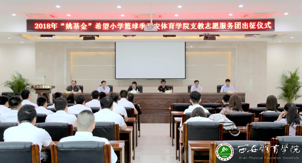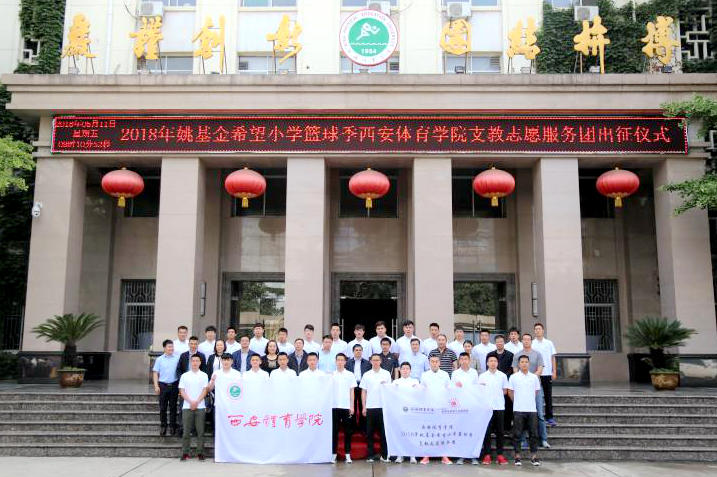2018年“姚基金”希望小学篮球季必赢nn699net支教志愿者服务团出征仪式在我院2号办公综合楼六楼报告厅举行