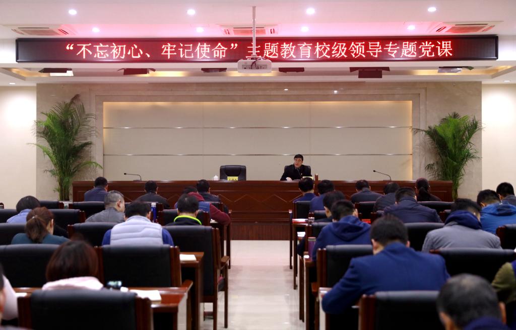 黄道峻结合“不忘初心、牢记使命”主题教育学习与习近平总书记关于教育的重要论述学习体会以及校党委调查研究、检视问题和整改落实的情况和思路进行了讲授。他强调,开展主题教育,要把深入学习贯彻习近平新时代中国特色社会主义思想作为根本任务,坚守“为党育人、为国育才”的初心和使命,全面把握守初心、担使命、找差距、抓落实的总要求,努力实现理论学习有收获、思想政治受洗礼、干事创业敢担当、为民服务解难题、清正廉洁做表率。学习习近平总书记关于教育的重要论述,要牢固树立“九个坚持”思想:坚持党对教育事业的全面领导,坚持立德树人,坚持优先发展教育事业,坚持社会主义办学方向,坚持扎根中国大地办教育,坚持以人民为中心发展教育,坚持深化教育改革创新,坚持服务中华民族伟大复兴,坚持把教师队伍建设作为基础工作。我们要把学习习近平总书记关于教育的重要论述作为重要政治任务抓紧抓好,融入思想学,形成体系学,带着问题学,提升本领学。要在学深悟透上下功夫,深刻领会习近平总书记关于教育地位作用和目标的重要论述,关于立德树人根本任务的重要论述,关于教师队伍建设的重要要求,关于教育领域改革的重要论述,关于党对教育工作全面领导的重要论述。