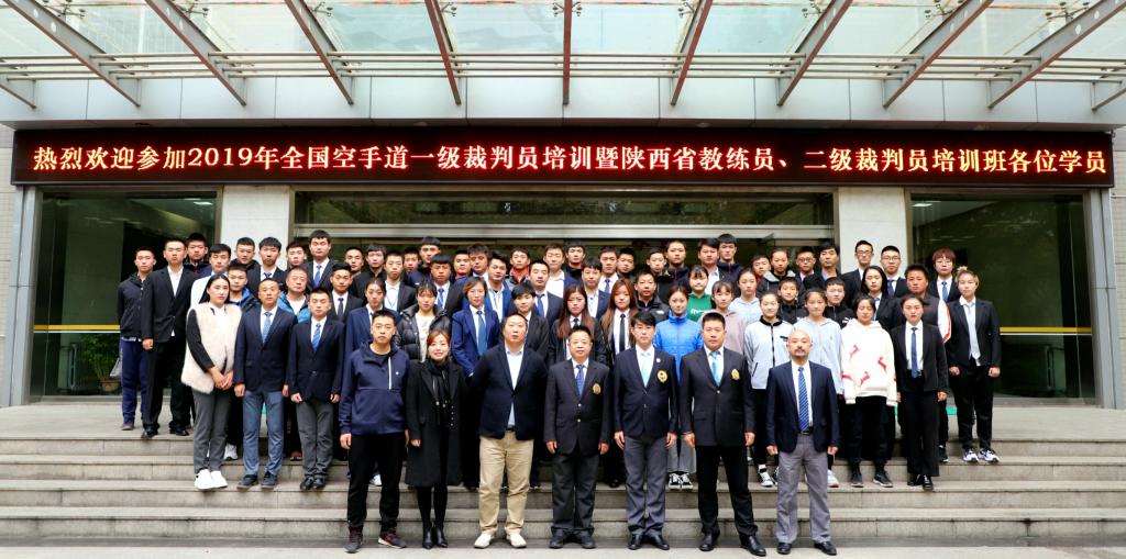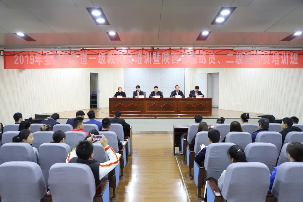 本网讯 11月15日至17日,2019年全国空手道一级裁判员培训暨陕西省教练员、二级裁判员培训班在我校开班并顺利结业。本次培训由中国空手道协会主办,我校和陕西省拳击跆拳道运动管理中心承办。中国空手道协会讲师、国家A级裁判庆玉林,国家A级裁判杜鲲,我院教师、国家A级裁判马波出席了开班仪式,陕西省拳击跆拳道运动管理中心副主任李涛致欢迎辞,陕西省拳击跆拳道运动管理中心办公室主任付莹主持了开班仪式。