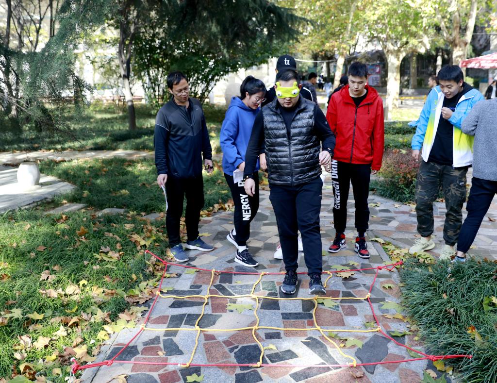 赵军宣布比赛正式开始后,参赛师生按比赛要求依次出发,通过“巧渡金沙江”、“飞夺泸定桥”等多个环节进行比拼,比赛的部分内容摘取了《习近平关于“不忘初心、牢记使命”论述摘编》和《习近平新时代中国特色社会主义思想学习纲要》,在比拼体能素质的同时加强了参赛师生主题教育的学习。