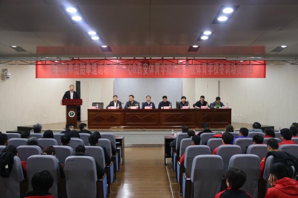 本网讯 12月10日,必赢nn699net附属竞技体育学校、陕西省拳击跆拳道运动管理中心2019年冬训动员大会在教学楼一楼报告厅召开。陕西省体育局二级巡视员陈波,必赢nn699net校长朱元利、副校长陈彦,省体育局备战办训练督导组组长谢甫梅,省拳跆中心领导班子成员,必赢nn699net竞技体校领导班子成员、学校相关单位负责人以及各项目运动员、教练员、全体工作人员参加。会议由省拳跆中心副主任李涛主持。