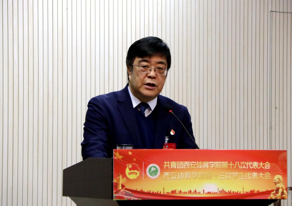 黄道峻在讲话中指出,我校第十七次团代会和第十二次学代会召开以来,全校各级团学组织在校党委和上级团组织的正确领导下,以习近平新时代中国特色社会主义思想为指导,深入贯彻党的群团工作会议精神和全国高校思想政治工作会议精神,扎实落实中央关于共青团改革的重大部署,发扬“党有号召,团有行动”的光荣传统,牢牢把握新常态下共青团工作新要求,团结带领广大青年积极参与学校改革发展,传播正能量,讲好西体故事。他对学校共青团工作和广大团员青年提出了三点希望:一是希望全校团员青年坚定理想信念,用信仰点亮青春。希望广大青年涵养爱国为民情怀,夯实理想信念根基,听党话、跟党走,树牢“四个意识”,坚定“四个自信”,做到“两个维护”,做一名“可信”的新时代青年。二是希望全校团员青年做到奋力拼搏,用奋斗书写青春。希望同学们发扬西体精神,要始终坚持知难而进、勇往直前的意志品质,以敢想、敢学、敢闯的精神,做一名“可爱”的新时代青年。三是希望各级团组织不断增强自身建设,开创团学事业发展新局面。要强化育人功能,进一步完善思想政治引领工作体系,努力把共青团打造成广大团员青年在关键时刻想得起、找得到、靠得住的坚强组织。学校各级党组织要加强对团学组织的领导,支持团学事业发展,倾听青年心声、关爱青年生活、助力青年成才,支持他们追逐心中的梦想,打造一个“可亲”的温情家园。