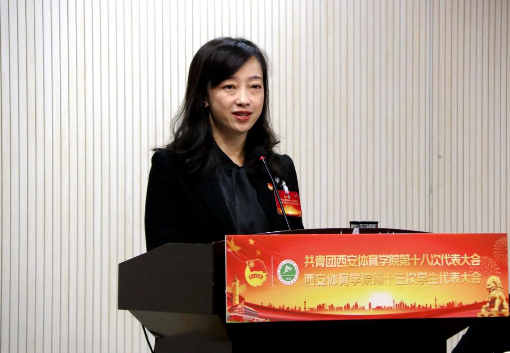 校团委书记熊辉作了题为《勇担新使命、聚力新作为、建功新时代——团结带领全校团员青年为学校全面建设高水平体育大学谱写壮丽篇章》的工作报告。报告对当前校共青团工作进行了总结,并对下一阶段的工作进行了部署和展望。熊辉表示,今后校团委将扎实推进共青团组织改革创新,大力实施五大工程,即思想政治教育工程、立德树人铸魂工程、实践素质拓展工程、学生身边的团组织建设工程、学生权益维护服务工程,团结带领全校团员青年为把我校建成高水平体育大学不断奋斗。