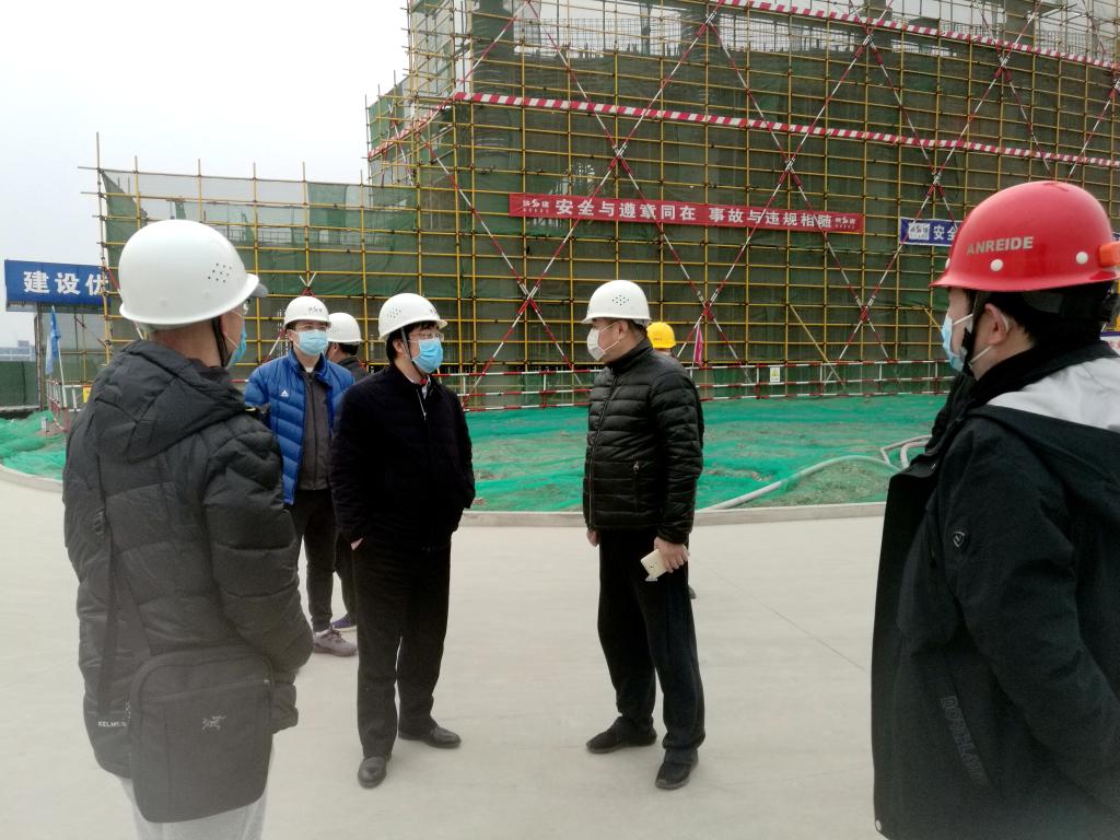 在检查中,黄道峻查看了工程二部医务室、防疫物资储存室以及隔离区域设置和隔离宿舍的准备情况,基建处处长甘泽军对疫情防控与复工工作进行了汇报。黄道峻表示,鄠邑新校区疫情防控工作提前谋划、组织得力、措施到位、准备充分,为项目建设在节后率先复工创造了先决条件。