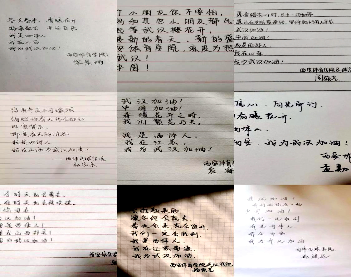 创作主题作品为抗“疫”加油——足球学院发起疫情作品征集活动,主题为“武汉加油,共渡难关”,同学们通过作品表达祝福与关怀,分享自己在疫情防控期间的所思所感。