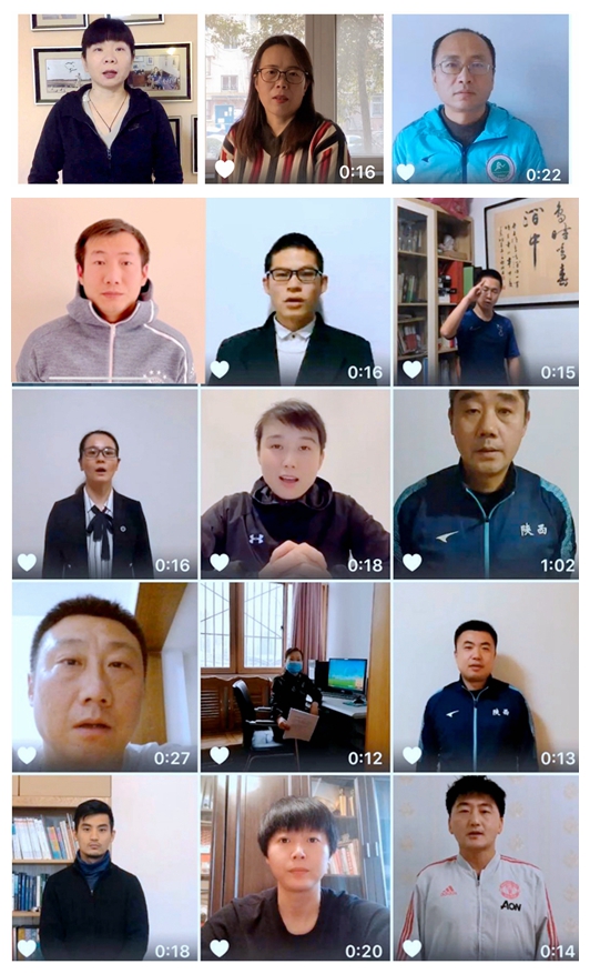 录制短视频加油鼓劲——面对新冠肺炎疫情,党委副书记、纪委书记赵军作为联系校领导与足球学院干部教师通过录制短视频为同学们加油鼓劲,在送上寄语的同时带给同学们温暖与感动,加强同学们的责任与担当意识,坚定师生共同抗疫的信心与决心。