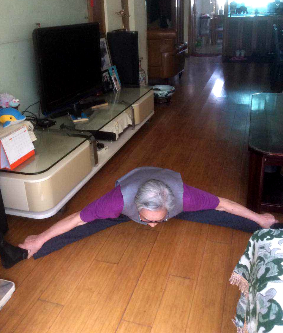 在“足不出户”的日子里,我俩会利用客厅空地,进行健身活动。夫人比较偏重步行,在室内走圈圈;我比较注重柔韧和力量练习,会在瑜伽垫上练习腹肌、腰肌和股四头肌。