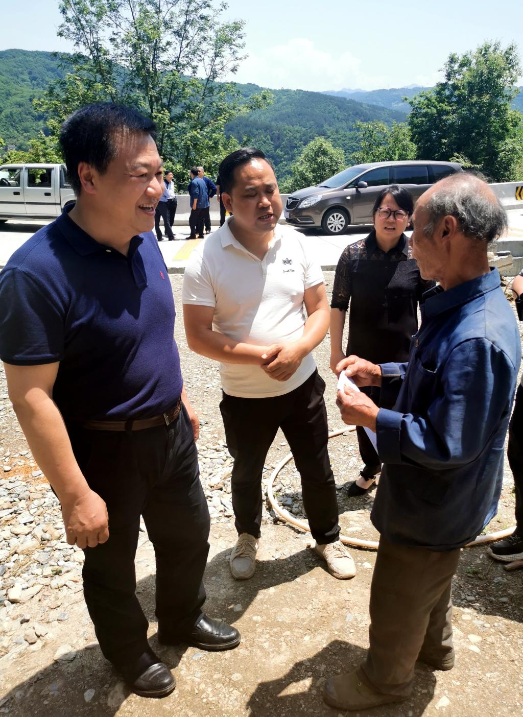 座谈会结束后,刘子实、陈彦一行实地查看了蜂蜜养殖基地并走访慰问了谢坝村贫困户。