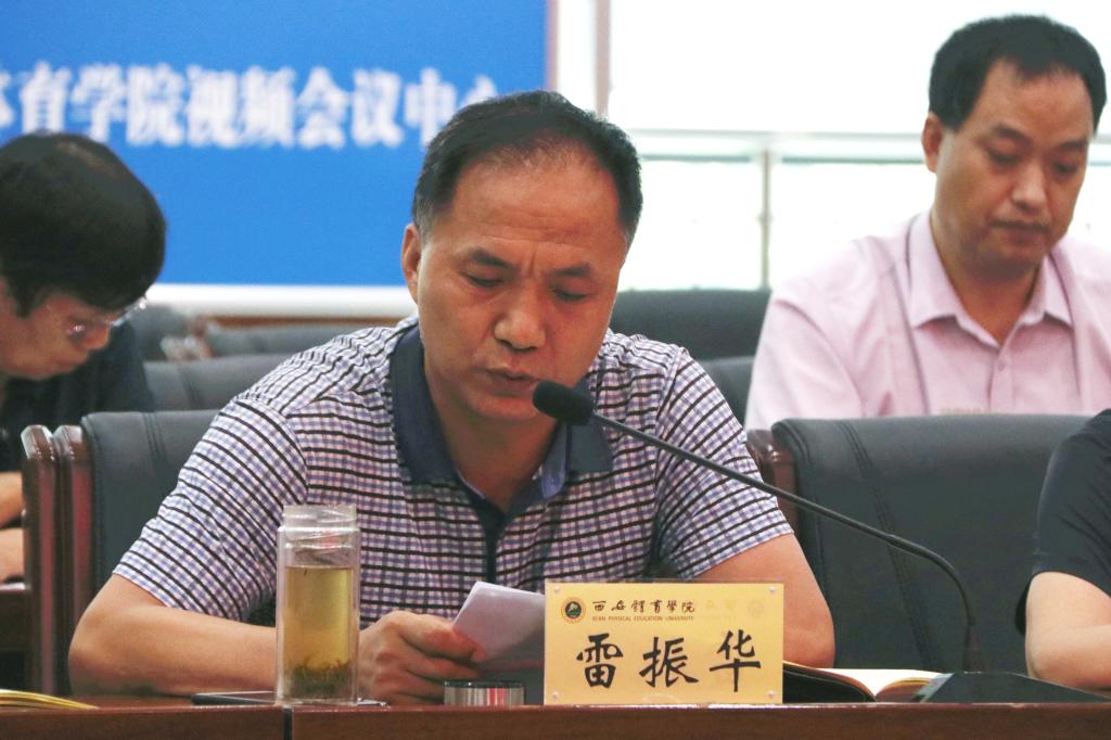 保卫处处长雷振华,竞技体校党总支竞训党支部刘少辉作为疫情期间在一线工作、训练的党员代表分享了心得。雷振华表示,校园安全稳定是学校各项工作开展的基础,疫情期间保卫处全体工作人员挺身而出,坚守岗位,战斗在防控的最前沿,同时日常安全稳定工作常抓不懈,筑牢了校园安全防线。
