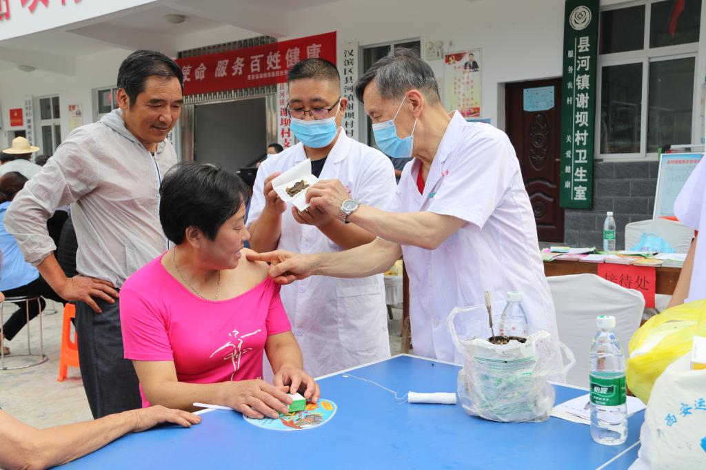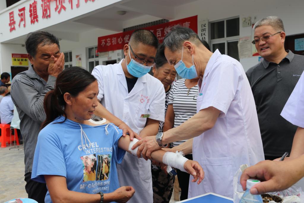 由于长期从事体力劳动,加上潮湿的生活环境,村民患骨关节疾病的人数仅次于心脑血管疾病,严重影响了村民的生活质量及劳动能力。70多岁的骨伤科主治医师郭业富亲自上阵,利用学校特制的黑玉断续膏外贴疗法,缓解了大多数村民的骨关节疼痛。同时,他手把手指导当地卫生室医生,讲解如何徒手精确诊断骨关节疾病。