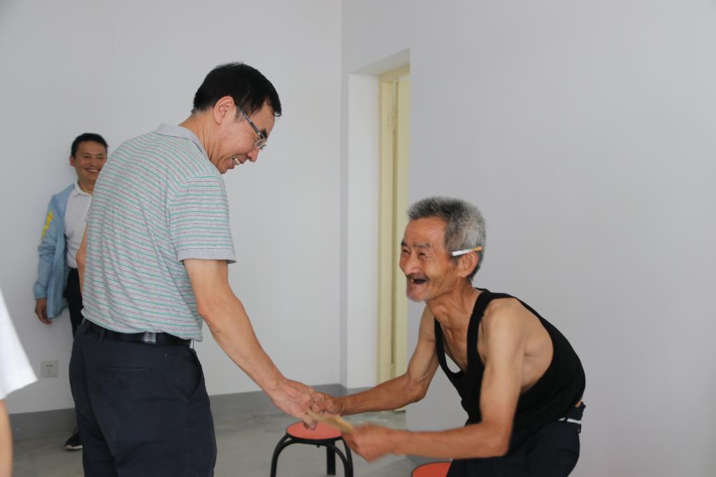 村子里像谢永兴家这样年长多病的留守老人还有很多。70岁的陈尚金因常年从事繁重农活,腰部已不能直立。去年通过政策认定,老俩口免费搬进了48.44平米的安居房,两室一厅的房子推窗见山,现代化的厨卫系统让他们的日常生活更加方便。朱元利一行和陈尚金坐在一起亲切地拉着家常,老人热情的分享着搬家的喜悦,不停地说“感谢党的好政策,让我陈老汉也住上了单元房!”