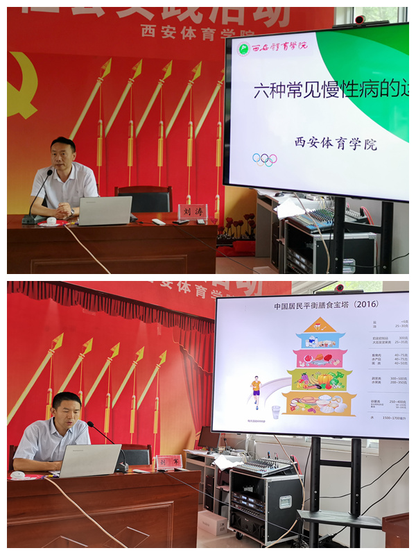 我校运动与健康科学学院刘涛教授和刘军副教授就运动防治慢性病和运动营养学为当地居民开展健康知识专题讲座,得到了群众的一致好评。随后,服务团前往黄龙县石堡镇吉家河村和黄龙县敬老院进行现场问诊,免费开展血糖、血压、体脂、肺活量等体质测量活动,为群众提供合理化的养生建议。在我校运动创伤医院外科主任吕原的指导下,服务团的同学们热情、认真地为老人们检查身体,送去关怀和温暖。