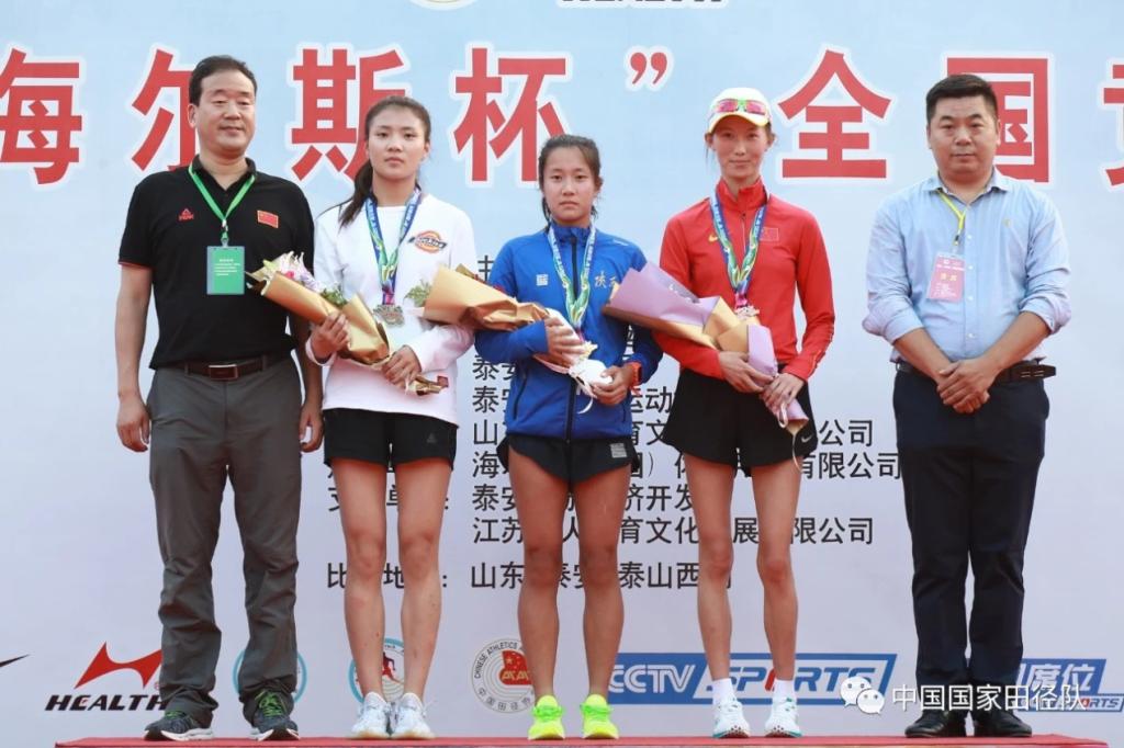陕西获得女子20公里竞走团体冠军(中)苏文秀(右二)获得女团季军