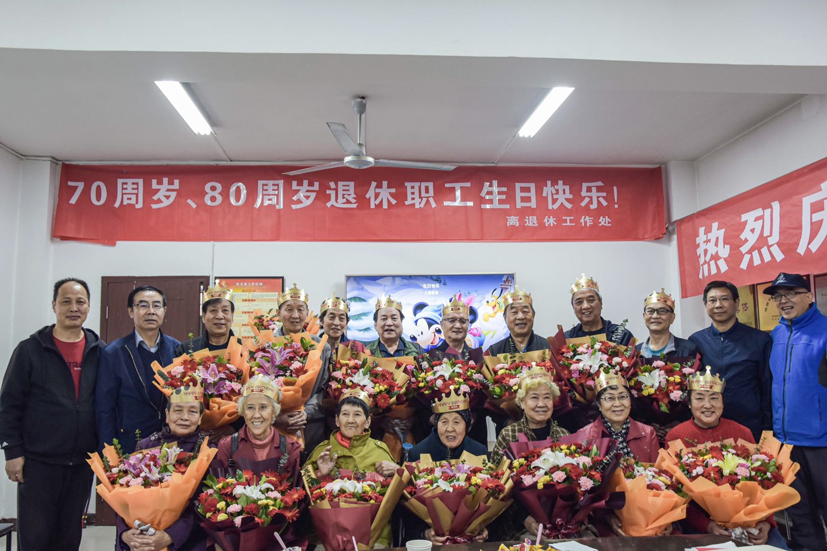 23日上午,我校在离退休处活动室为24名今年年满70周岁、80周岁的离退休老同志举办了集体生日会,齐唱生日快乐歌,活动室传来阵阵欢声笑语。