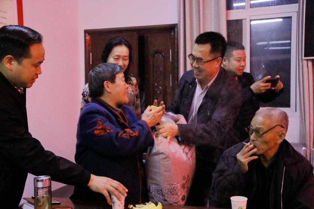 黄道峻、李富生为老人们送上毛毯等生活用品