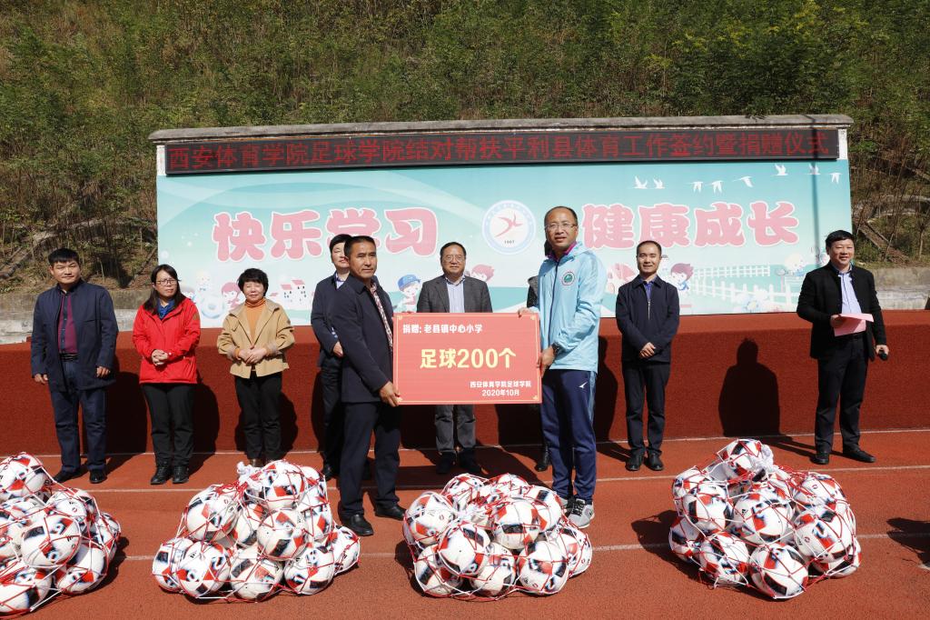 在平利县老县镇中心小学,刘宝平一行出席了我校足球学院与安康市平利县教育体育科技局“体育结对帮扶”合作协议签约及体育器材捐赠仪式,并观摩了足球教研室教师宋辉及陈芳芳的校园足球教学训练公开课,对此次活动给予充分肯定。
