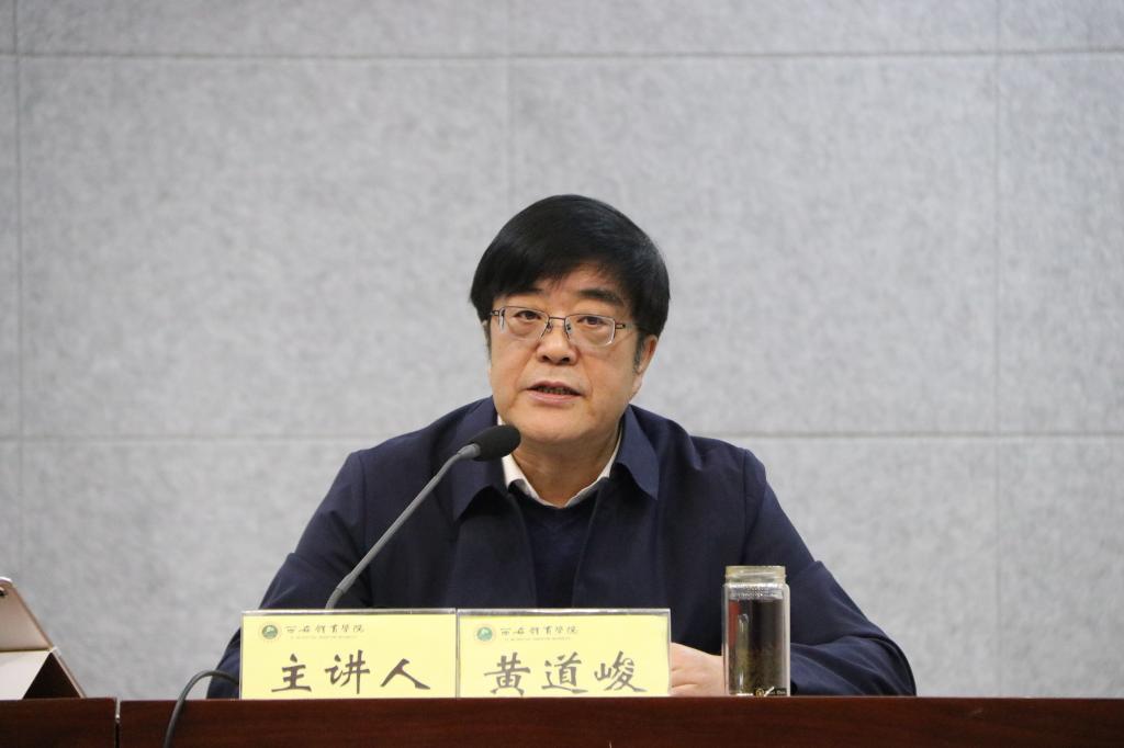 12月11日,党委书记黄道峻以《韬光养晦 追逐梦想 谱写中华民族伟大复兴的光辉篇章——擘画新时代的伟大里程碑》为题,为全校科级以上干部、党支部书记宣讲十九届五中全会精神。