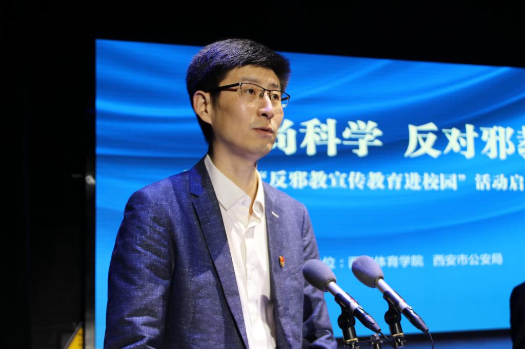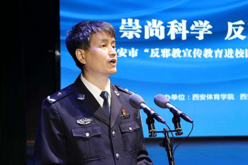 我校党委书记黄道峻在致辞中对西安市公安局来校举办“反邪教宣传教育进校园活动”,为师生带来一堂生动而深刻的反邪教宣传教育课表示了欢迎。就开展好“反邪教宣传教育进校园活动”,他提出三点意见:一是要提高思想认识,结合贯彻落实党的十九大、全国教育大会会议精神,在党史学习教育中,汲取信仰、信念、信心的力量,始终保持清醒头脑和高度警觉,严密防范邪教向校园渗透。二是要强化宣传教育,做好反邪教警示教育“进教材、进课堂、进头脑”工作,常态化开展对师生的反邪教警示教育,不断提升广大师生识别邪教、防范邪教、拒绝邪教、反对邪教的意识。三是要做到齐抓共管,健全育人体系,建立党委牵头抓总,各职能部门、二级学院深入实施,各年级、各辅导员摸排管控,全体师生自觉防邪拒邪的教育、排查、预警和处置工作机制,特别是要严格校园安全管理,加强校园网络监管,阻断邪教向校园网络渗透的渠道。