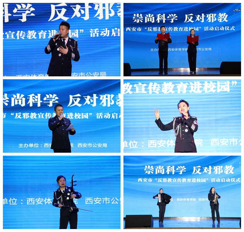 随后,西安市公安局警官艺术团和我校大学生艺术团为师生们呈现了一场精彩纷呈的“崇尚科学,反对邪教”主题的文艺演出。演出形式多样,十个节目的精彩展示获得了在场师生的热烈反响。