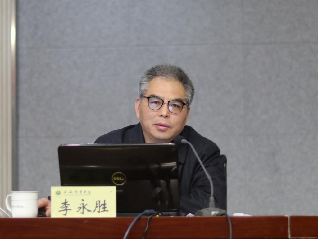 本网讯 4月14日下午,我校党史学习教育专题培训在教学楼一楼报告厅举行,西安交通大学马克思主义学院马克思主义原理研究所所长李永胜教授作“党史学习:为什么学、学什么、怎样学”专题讲座。党委副书记文立新主持,全校处科级干部及党支部书记,机关、后勤部门全体党员参加。