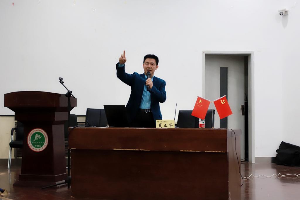 讲座特邀国家一级作曲家、著名指挥家、陕西省广播电视民族乐团艺术委员会主任夏正华教授为师生讲述、品鉴音乐作品中的红色党史。
