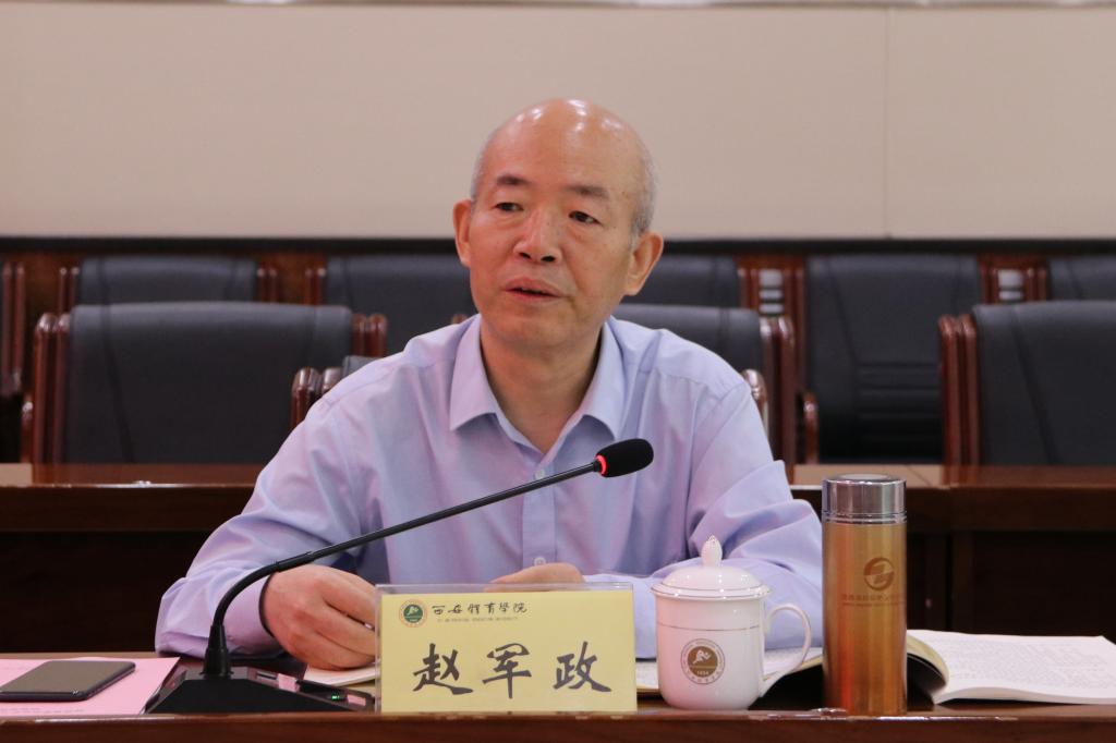 在听取学校工作汇报之后,赵军政同志对我校党史学习教育开展情况给予高度评价,并从“重视、得当、多样”三方面做了详细点评,他指出:党史学习教育开展以来,必赢nn699net工作开展扎实,专题学习深入,方向正确、内容完整、形式多样、成效显著,展现了学校特色,并做好下一阶段党史学习教育,他提出四点意见:一是要“用心”,在“明理”上用心,用心领悟习近平新时代中国特色社会主义思想的丰富内涵,深刻领会习近平总书记关于教育的重要论述和指示批示精神,用心感悟,传道授业解惑。二是要“用力”,在“增信”上用力,引导广大党员干部师生不断增强对中国特色社会主义的坚定信念。三是要“用情”,在“崇德”上用情,坚持立德树人根本任务不动摇,把“为党育人、为国育才”镶嵌在党员干部和教师的内心深处,为党和国家培养时代新人。四是要“用劲”,在各自的本职工作上用劲,担当作为、学以致用,将党史学习教育成果转化为推动教育事业发展的强大动力。