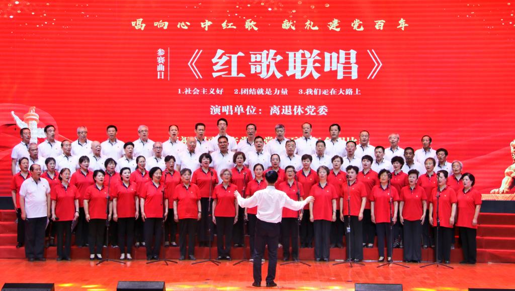 平均年龄71岁、最大年龄91岁的离退休党委合唱队用激昂的歌声演唱了《社会主义好》《团结就是力量》《我们走在大路上》红歌联唱,唱尽先辈的谆谆嘱托。