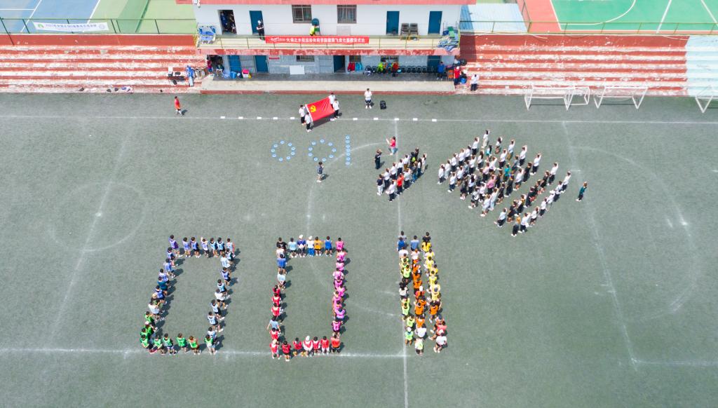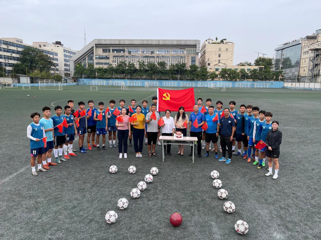 足球学院师生党员举行宣誓仪式,齐唱《唱支山歌给党听》为党送上生日祝福。