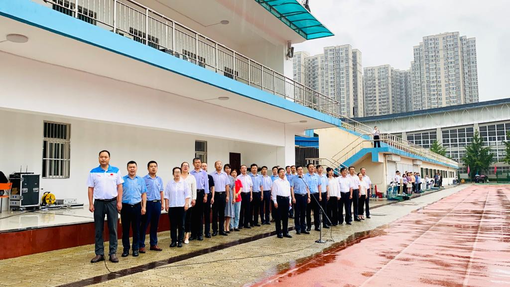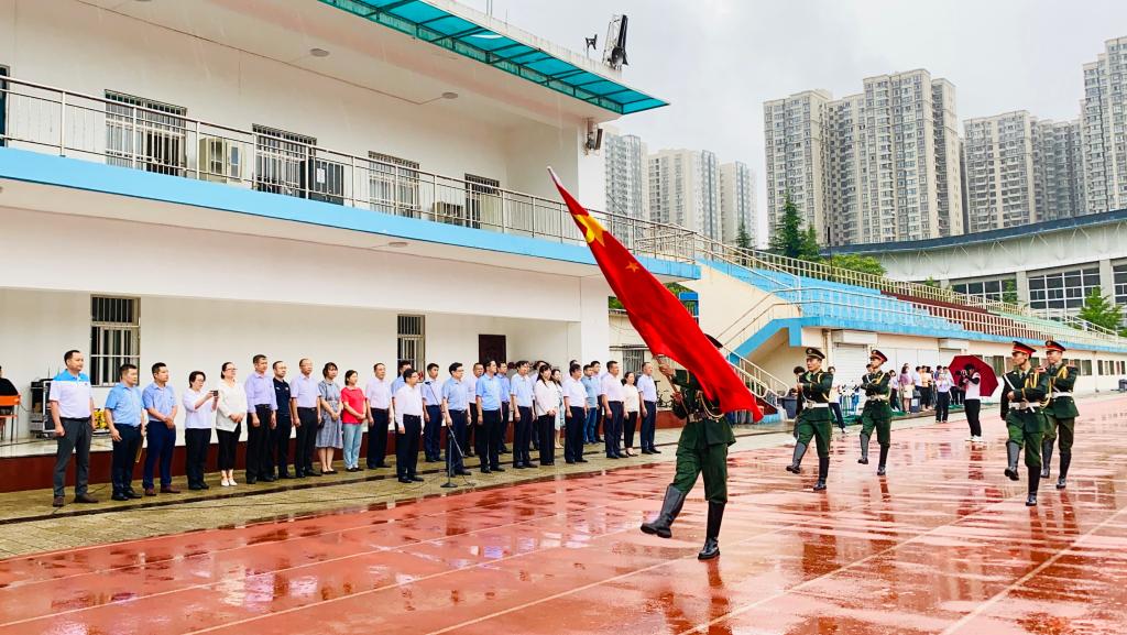 7月1日早7:00,我校在第一田径场举行隆重的升旗仪式,全体校领导、二级单位党政负责人、职能部门负责人、全体辅导员和在校学生在清晨的风雨中面向国旗,唱响国歌,共同迎接建党百年的光辉时刻。