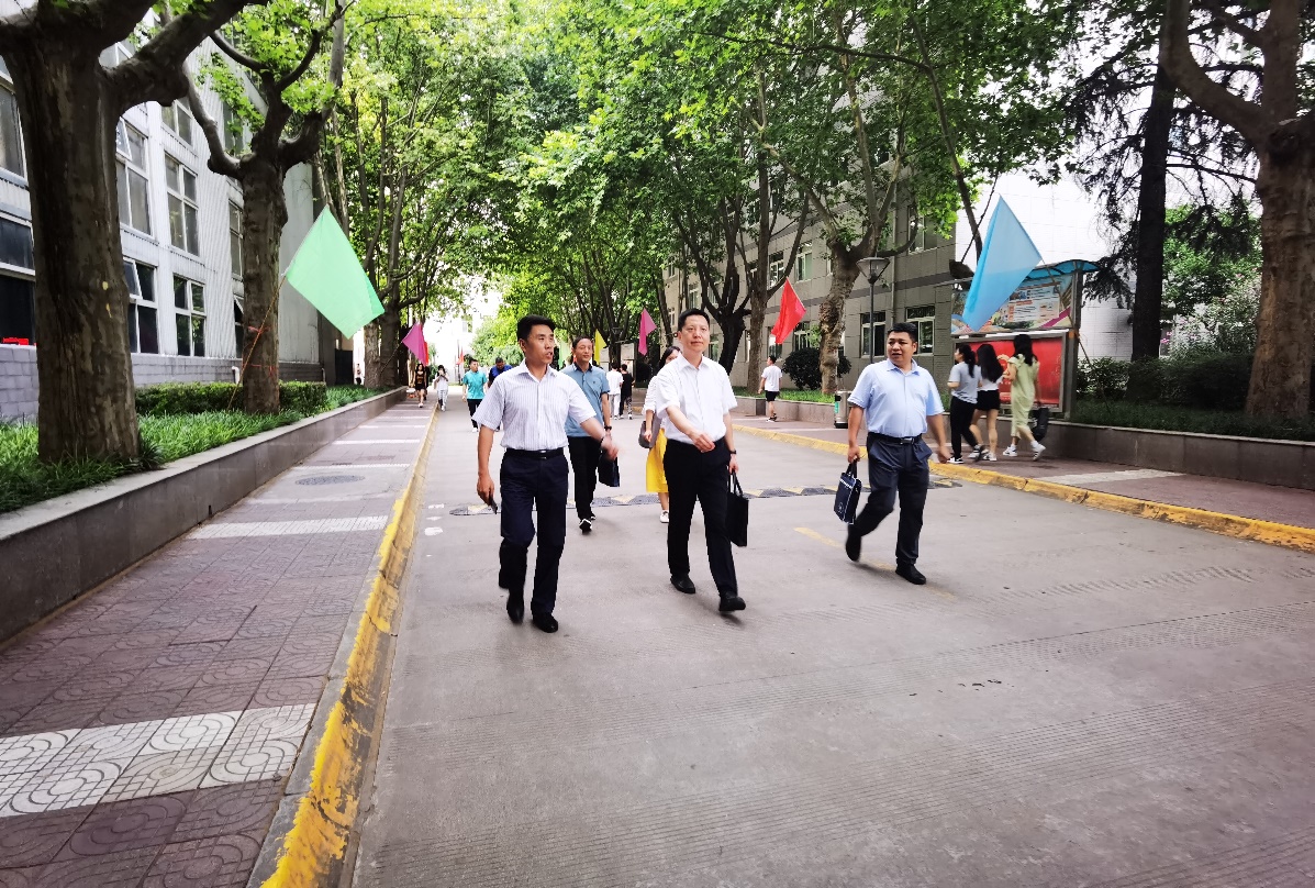 本网讯 6月30日下午,陕西省教育厅人事处长申雪峰、副处长李宁莅临我校,对我校安全生产月的工作情况进行了专项检查指导。党委校长办公室主任张军、校医院院长何昌谋、后勤管理处(集团)服务质量监督监控与安全监管主任王新宇陪同。