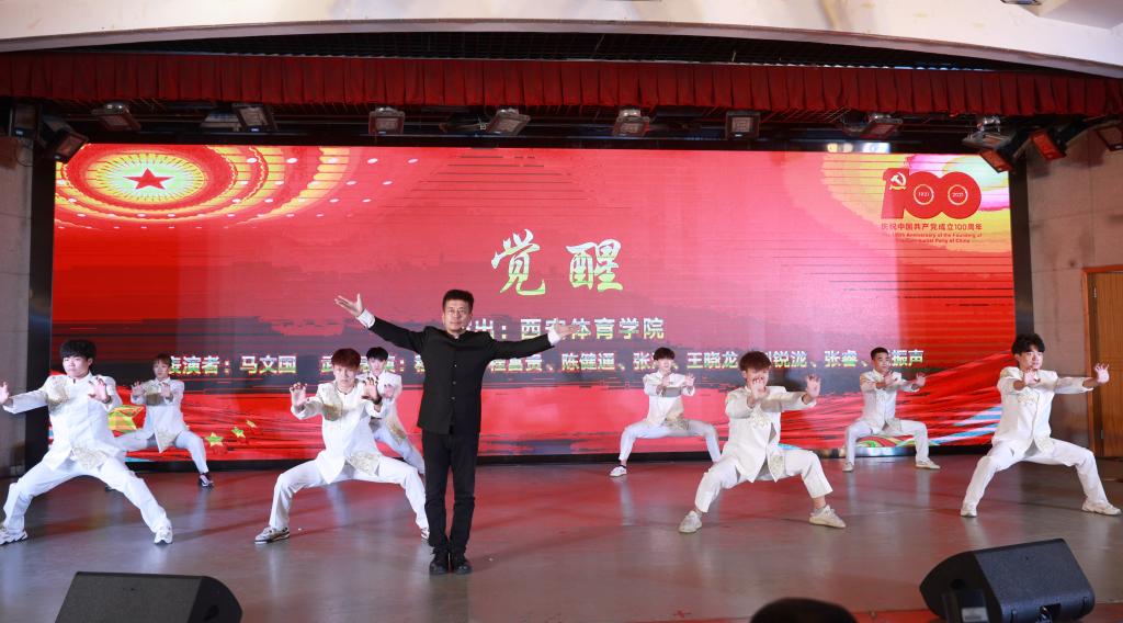 我校统战部组织致公党党员、武术学院副教授马文国参加了此次活动,他以《觉醒》为题,以第一次世界大战结束后帝国主义国家在法国巴黎召开的“巴黎和会”为背景,回顾我国著名外交官顾维钧为争夺中国山东省的主权据理力争的历史事件,引发了中国人民“只有马克思主义才能救中国”意识的觉醒。武术学院教师朱海楠指导八名学生用长拳、南拳、器械等武术形式为诗朗诵助兴,表达了武术人对建党百年的礼赞和祝福。