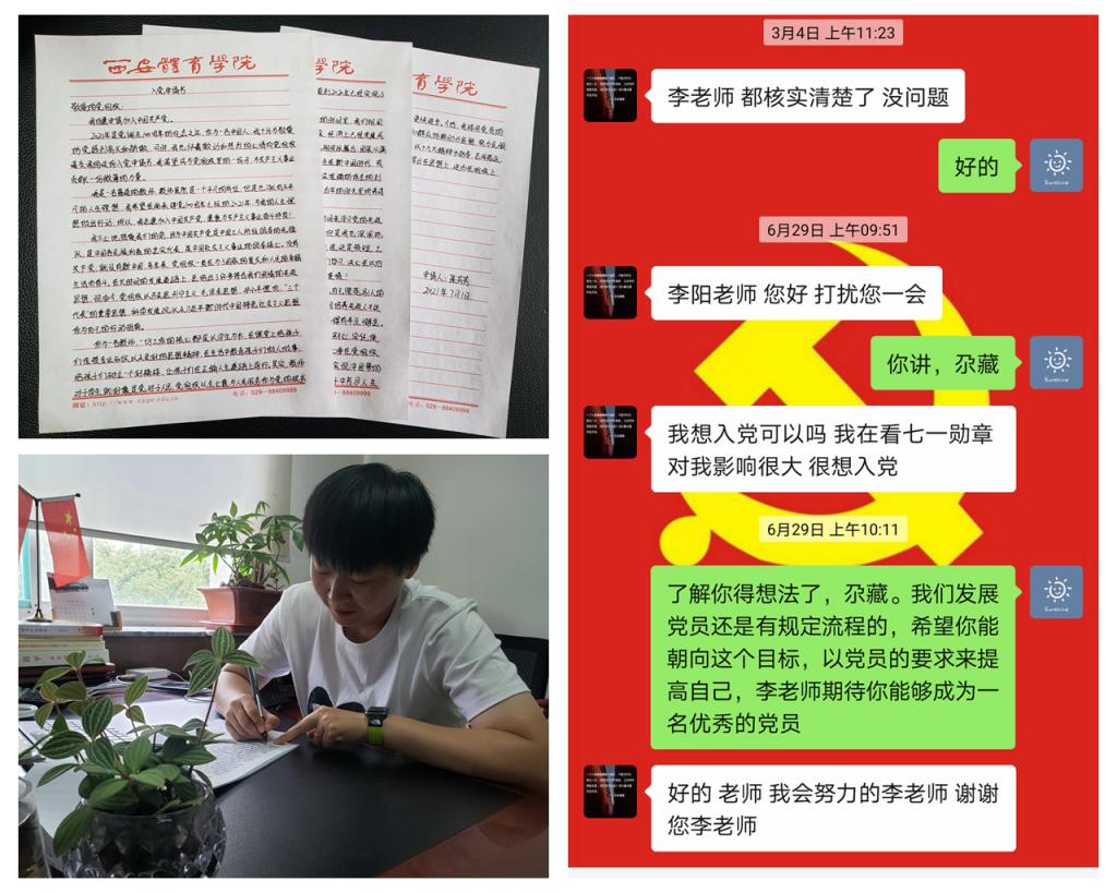 足球教研室陈芳芳老师和2018级3班学生尕藏桑珠在收看大会直播后被深深震撼,随即提出要加入光荣神圣的中国共产党。陈芳芳在7月1日当天及时地向党组织递交了入党申请书。尕藏桑珠积极入党的想法得到辅导员肯定,通过引导交流,他更加坚定了自己的信念,立志在未来的学习生活中以实际行动向党靠拢!