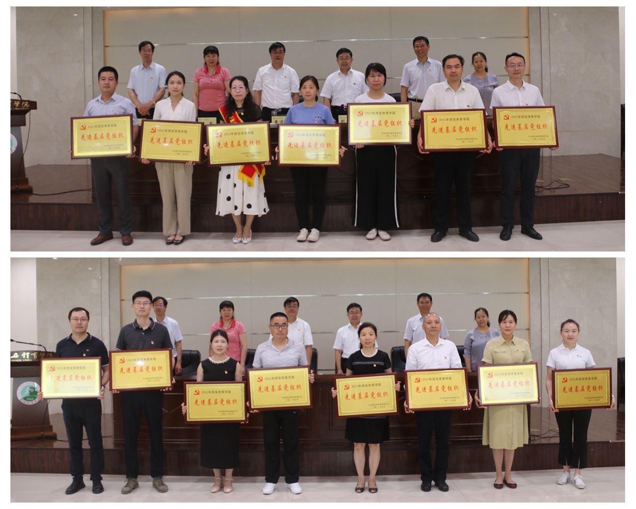 体育经济与管理学院党总支、运动休闲学院党总支、艺术学院党委、运动解剖力学教研室党支部、党委组织部党支部、党委学生工作部(学生处)团委党支部(联合)、党校办国际交流中心党支部(联合)、操舞教研室党支部、田径教研室党支部、教务处党支部、沣峪校区机关党支部、保卫处(武装部)党支部、纪监办党支部、运动与休闲学院学生党支部、运动训练学院学生第三党支部