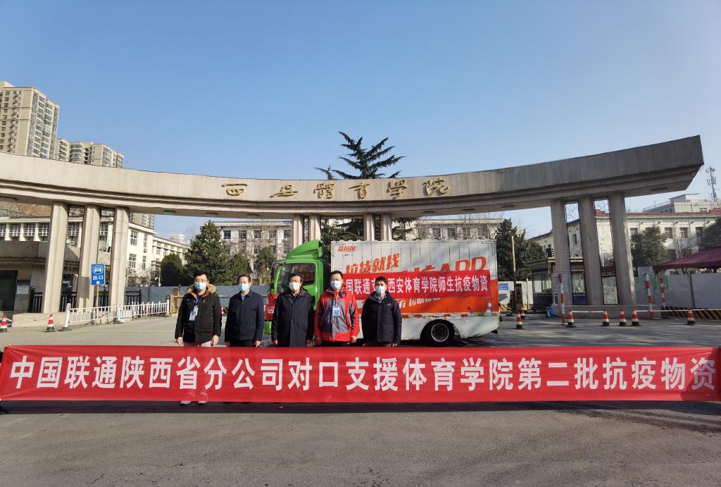 截至日前,陕西联通共向我校捐赠了48万元的防控物资,扎扎实实缓解了学校物资紧缺的状况,学校坚信,在以陕西联通为代表的社会各界的大力支持和全校师生共同努力下,必将打赢这场疫情防控攻坚战,西体师生再次向陕西联通表示衷心感谢和崇高敬意!