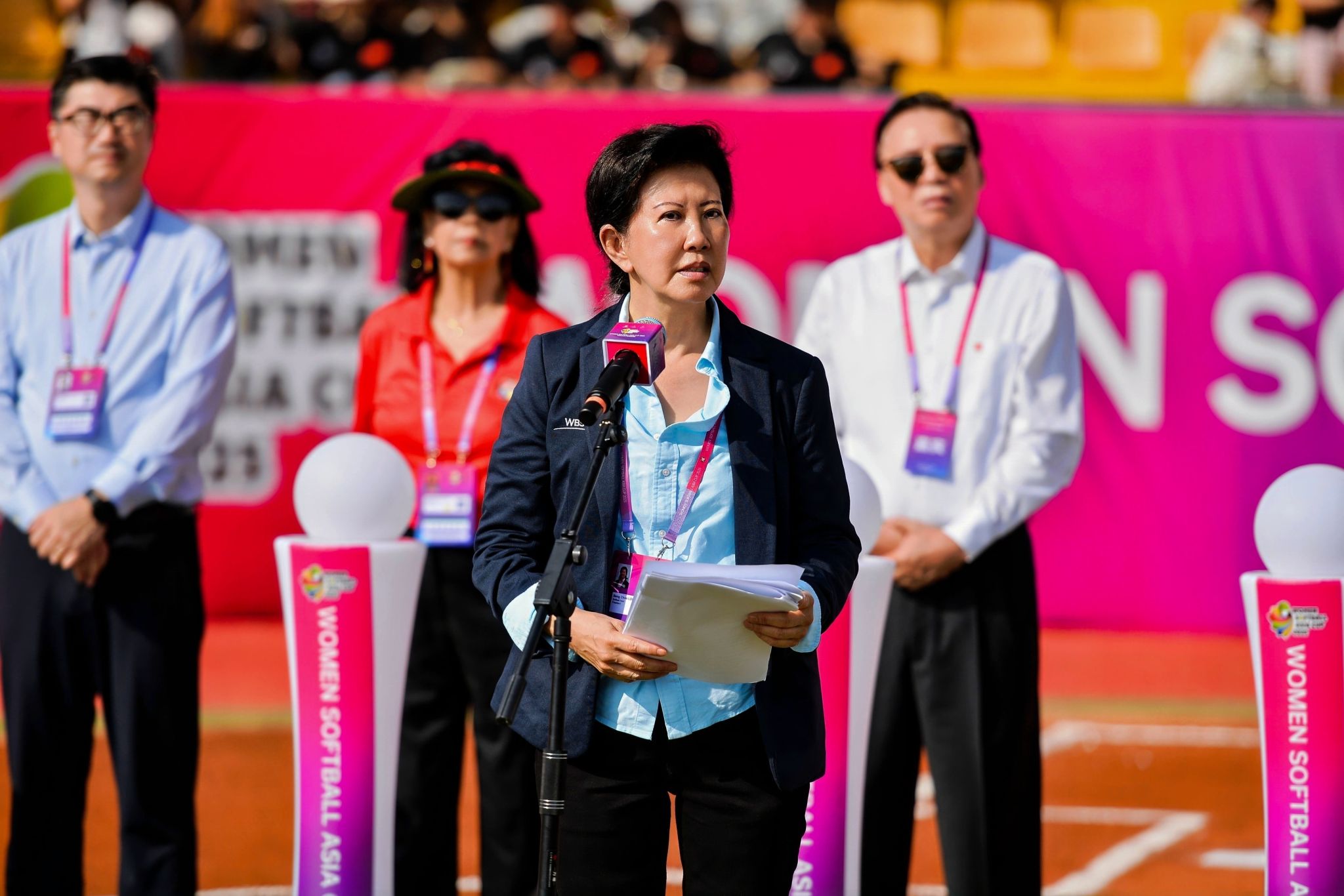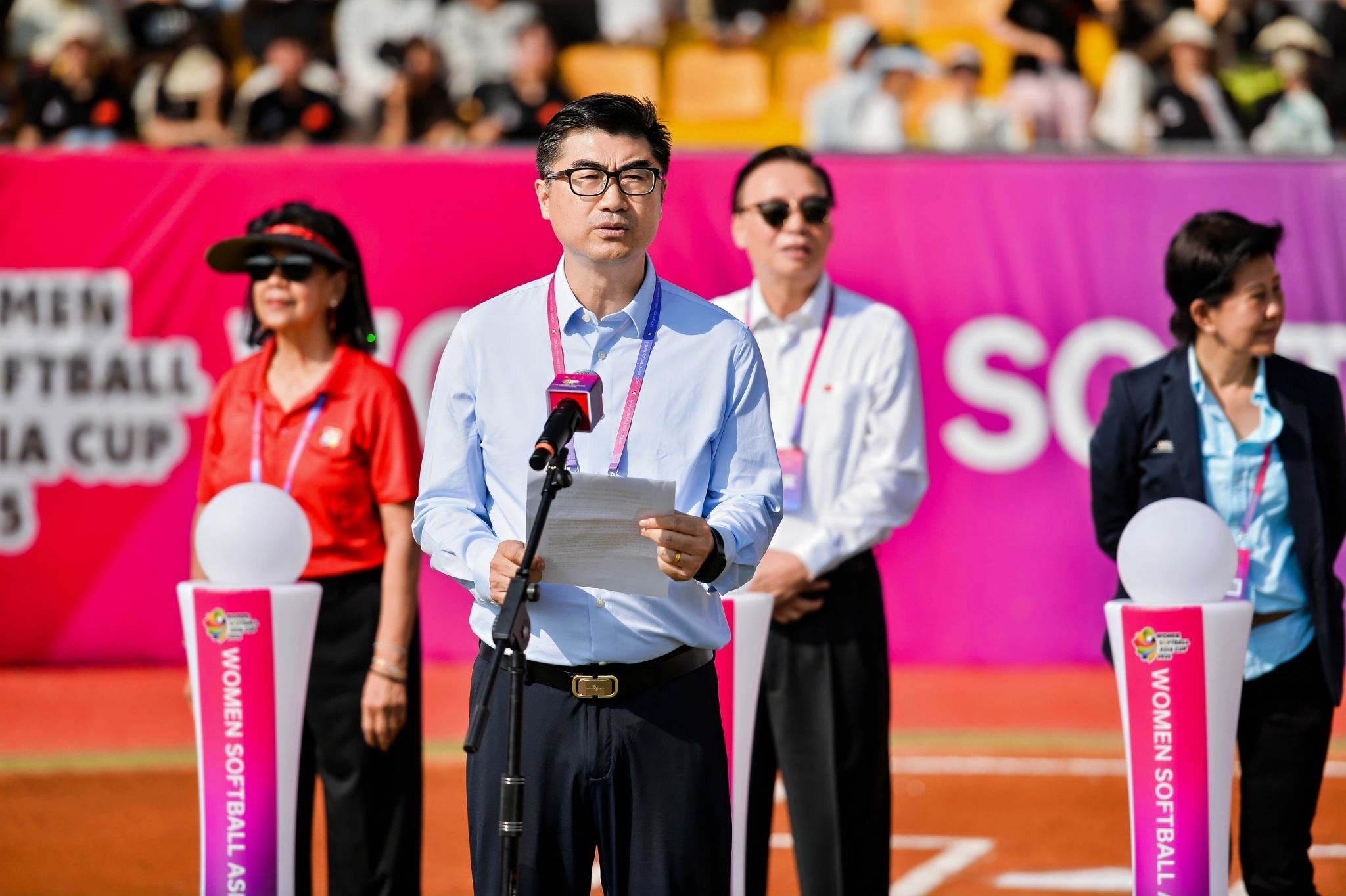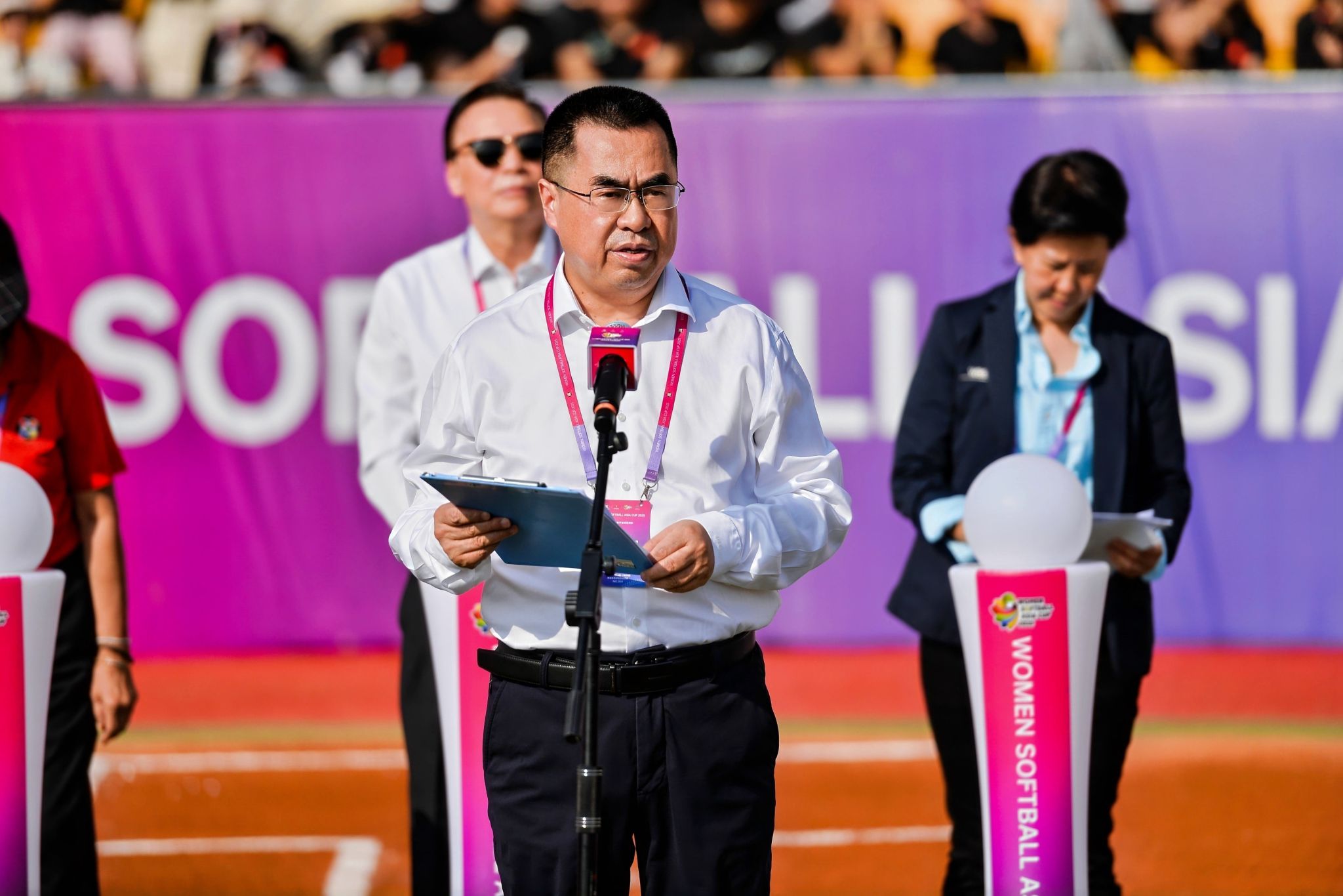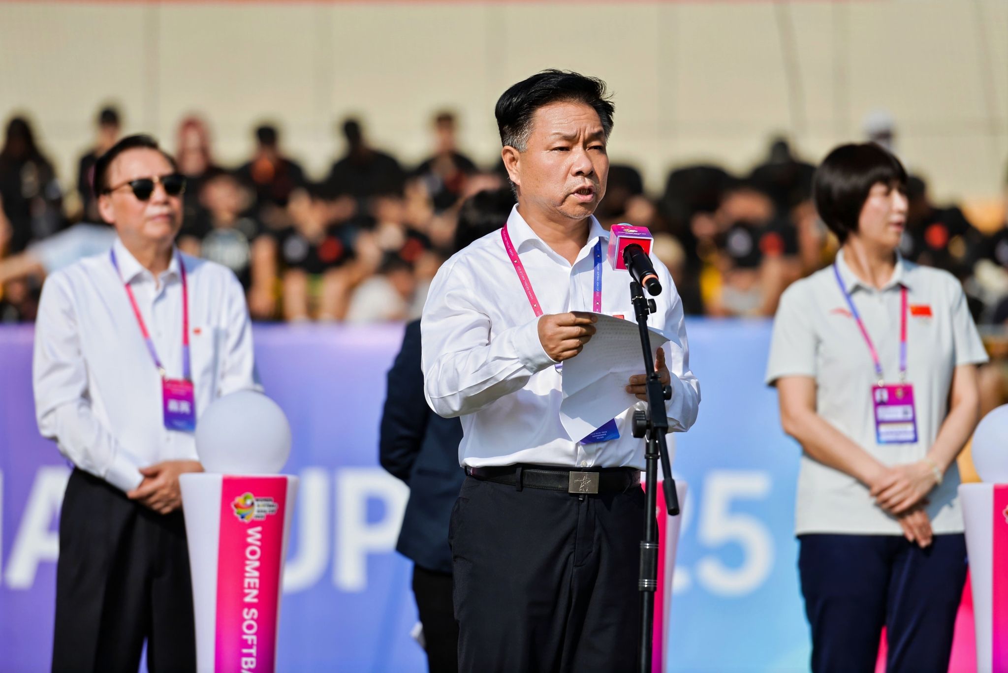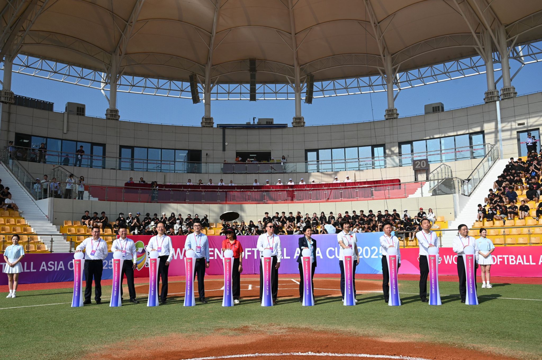 本网讯 7月14日,2025年女子垒球亚洲杯开赛仪式在必赢nn699net鄠邑校区垒球场举行。亚洲垒球联合会主席刘明珠、秘书长林瑞玉,国家体育总局原副局长杨树安、手曲棒垒球运动管理中心主任王涛,中国垒球协会会长陈旭,陕西省体育局副局长徐鹏,西安市体育局局长马锐,鄠邑区委书记李化、区长汪国栋,必赢nn699net党委书记刘子实、校长李富生出席,开赛仪式由中国垒球协会秘书长郑璐主持。