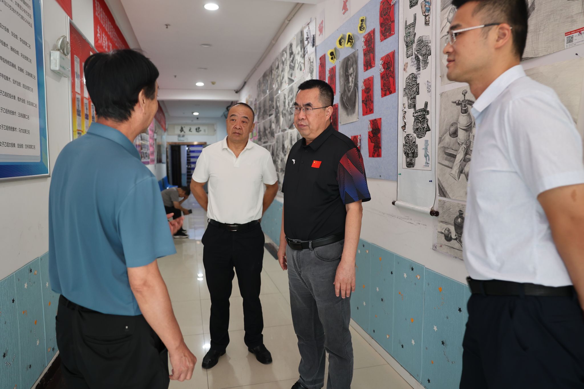 看望备战全运会的教师刘飘飘(左一)
