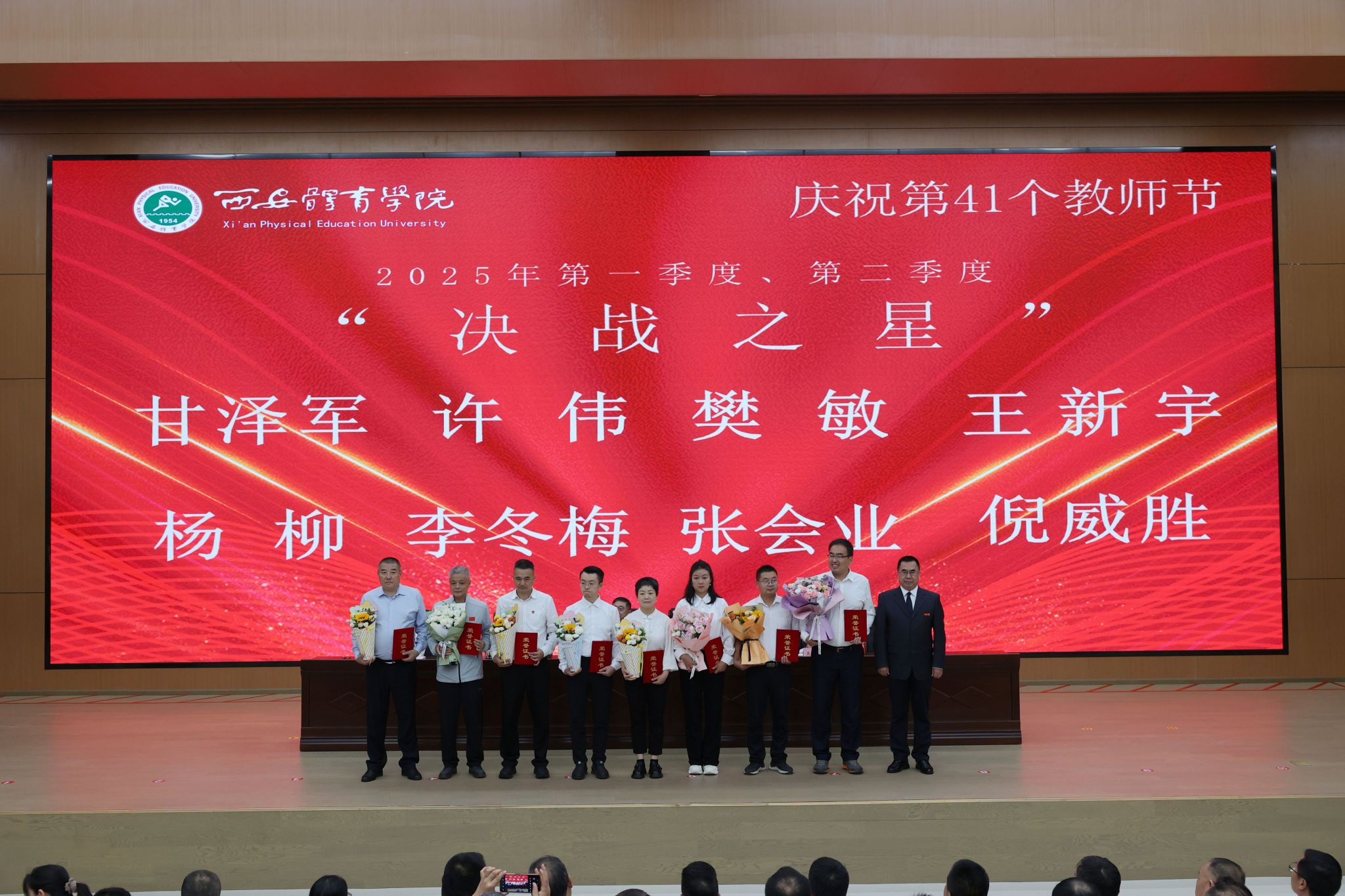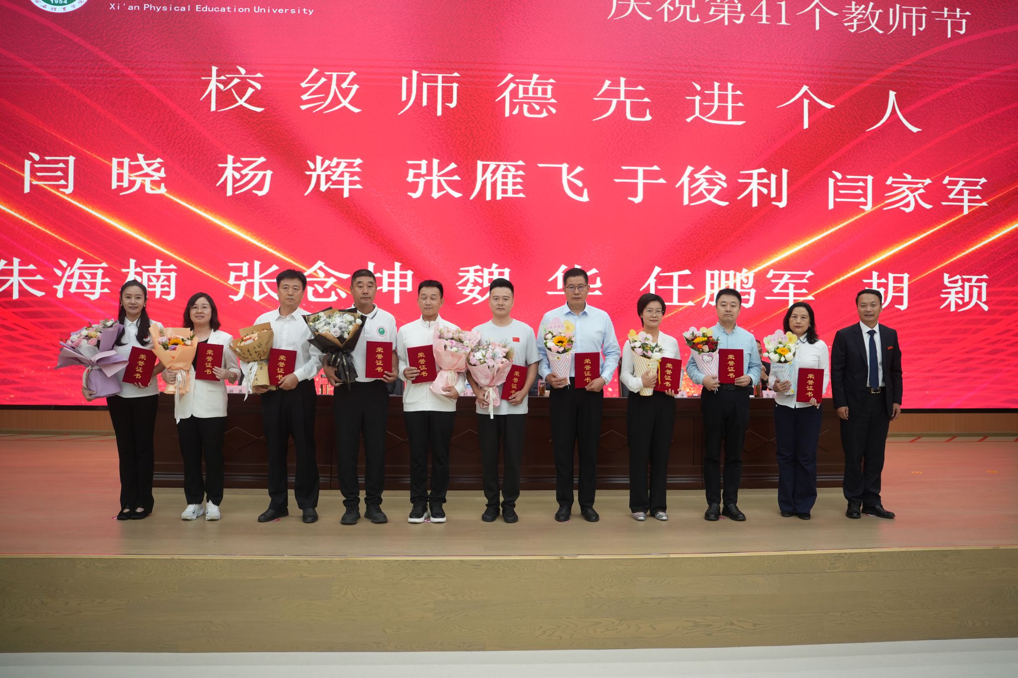 本网讯 金秋九月,丹桂飘香。在第41个教师节来临之际,9月10日,我校在鄠邑校区举行庆祝第41个教师节暨2025年教师表彰大会。校领导、受表彰教职工、教师代表及副处级以上干部齐聚一堂,共话初心使命,共襄育人荣光。