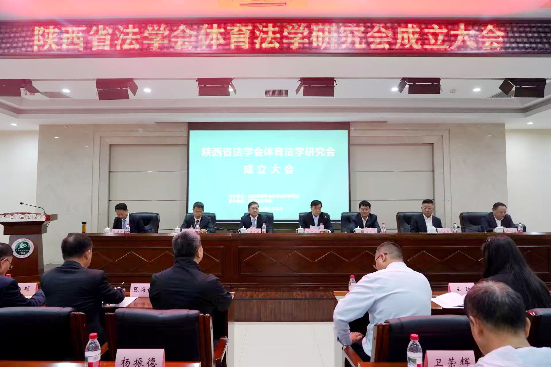 成立大会上,陕西省法学会综合(联络)部主任徐剑波宣读关于同意成立陕西省法学会体育法学研究会的批复。与会代表表决通过了《陕西省法学会体育法学研究会理事名单》《陕西省法学会体育法学研究会章程》(试行),并选举产生了研究会常务理事34名,会长1名、副会长9名、秘书长1名、副秘书长2名。我校党委副书记、纪委书记、监察专员杨芳乾当选为研究会会长。