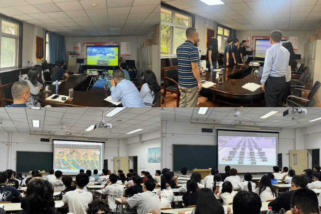 学院党委书记张鹏华最后指出:组织观看阅兵仪式,是学院加强师生思想政治教育和爱国主义教育的重要一环。希望全体师生能将观看阅兵激发的爱国热情和民族自信心,切实转化为推动学院事业发展的强大动力;勉励师生们学习人民军队听党指挥、纪律严明、作风优良、能打胜仗的优秀品质,并将其融入到学院的学风、教风和工作作风建设中,以昂扬向上的斗志和奋发有为的精神状况投入到当前各项工作中。