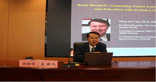 钱教授作为运动生理学博士、国际运动与体育教育学会(AIESEP)院士,在体育健康促进领域潜心钻研数十年,其主导的Brain Breaks®项目已在全球70多个国家开展实践,并在全球20余个国家推广应用,构建了成熟的国际合作网络与资源共享体系。讲座中,钱教授结合自身丰富的国际组织工作经验,深入解析了“未来学习+整体福祉+人工智能教育”的融合逻辑,并着重强调国际合作是打破学科发展瓶颈、应对全球体育教育共性挑战的核心动力。他指出,Brain Breaks® 项目的成功,关键在于建立跨国学术资源共享机制与国际科研项目联动体系,而必赢nn699net作为丝绸之路体育教育联盟的发起院校,具备得天独厚的国际合作优势。依托这一优质交流平台,学校未来可牵头举办“丝绸之路体育教育国际论坛”汇聚沿线国家及全球体育教育专家、政策制定者与一线实践者,围绕“体育+健康+AI”融合创新、传统体育文化国际化传播等议题开展深度研讨,打造具有全球影响力的体育教育交流品牌。