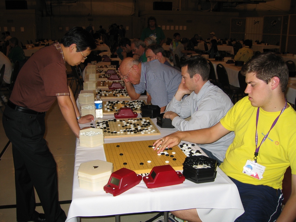 比赛在美国中东部北卡莱罗纳州举行。我院李星六段会同另两名棋手对当地的围棋爱好者进行了丰富多彩的指导活动,如:车轮赛表演、大盘讲解和赛事交流等。令美国友人欢心不已。赛事结束后,美国围棋协会又安排我们一路东行赴纽约、华盛顿等地进行围棋交流和指导。